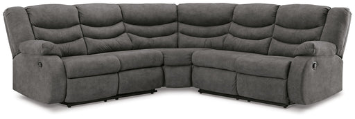 View full detailsThis power reclining sectional complements your contemporary cozy space. Bold block arms accentuated with form-fitting padding lend a high-style si...