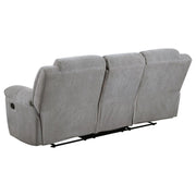 Transform your living room with the ultimate comfort and relaxation of our manual reclining set. Both pieces are wrapped in soft textured gray chenille fabric, offering a plush and inviting feel. The manual recline feature allows you to adjust your seating positions for optimal comfort, perfect for watching TV or reading a book. The set includes removable stainless steel cup holders and convenient soft-close storage compartments for added functionality. With pillow top arm supports providing extra comfort, this set is the perfect addition to any living space, combining style and coziness.