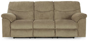 Sincere in its styling, this reclining sofa invites a relaxed sensibility into your space. Its beige upholstery has a universal appeal, with pull-tab reclining making it easy to kick back in comfort. Providing high-quality functionality at an affordable price, this sofa marries well with a myriad of design aesthetics.
