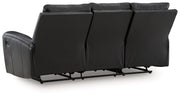 Looking for that perfect blend of comfort and style? This reclining sofa wraps you in luxury with an expertly crafted combination of leather and faux leather upholstery. Its clean lines and rich neutral tone work beautifully in contemporary spaces. With plump pillow top arms and pull tab reclining, it's your go-to spot for relaxing after a long day.