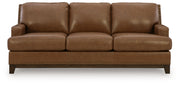 Effortlessly blending contemporary and classic elements for a truly timeless look, this sofa offers a fresh take on transitional style. A robust silhouette is coupled with skillfully matched leather and faux leather upholstery, while nailhead trim adds a touch of subtle sophistication. Pleasingly plump cushions with jumbo stitching provide exceptional comfort. We’re all in—how about you?