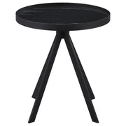 Briggs - Round Marble Printed Glass Top End Table - Black