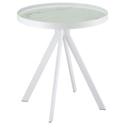 Briggs - Round Marble Printed Glass Top End Side Table - White
