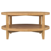 Start fresh with the warmth and inviting ambiance of a modern farmhouse coffee table. Made from Asian hardwood, it features a finish that's timeless and welcoming, perfect for a family room. The round table creates flow and offers a lovely focal point for a larger seating group. Its full lower shelf is a great place for decor that adds a personal touch. Both the table top and shelf have a slight dip, creating a tray-like effect that adds a great touch of dimensionality.