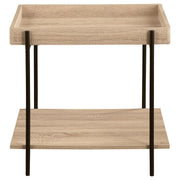 Elevate your living space with this modern coffee table set, combining clean design and versatile function. Crafted from engineered wood and heavy-gauge metal, the set features a wood grain finish that enhances its natural appeal. Each table includes a tray-style tabletop for added depth and security. The slim black metal frames lend a minimalist edge while ensuring durability. Complete with lower shelves, this set provides ample storage or display space for books, decor, or daily essentials.