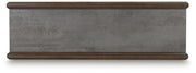 Master the art of mixed-material design with this sofa table. It sports an urban vibe, with faux cement lending an industrial edge to the contrasting dark brown finish. For a functional touch, lower shelves showcase your decor in style. Detailed mouldings on the side add even more cool character.