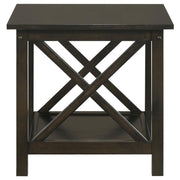 This 3-piece occasional table set includes a coffee table and two end tables, ideal for a living room or lounge. Constructed from hardwood, engineered wood, and rubberwood veneer, this set showcases a rich dark merlot finish. Each piece is designed with a lower shelf for extra storage space, while the X-shaped accents on the sides add a touch of visual appeal. This coffee table set is a perfect combination of form and function for your home.