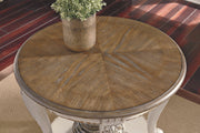 Realyn - Round End Table - White / Brown