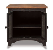 To those with an eye for the best in rustic farmhouse living, this two-tone end table doubles up on charm. Designer touches include plank-effect styling, distress marks and wire mesh door fronts for added character.