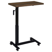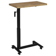 Transform your bedroom into a functional retreat with this height-adjustable C-table, designed specifically for use while reclining in bed. The 28-inch wide wood-inspired top offers ample space for working, dining, or reading. Featuring a smooth hand-crank mechanism, the table adjusts from 27 to 39 inches in height for personalized comfort. Its heavy-duty steel base, finished in a matte black powder coat, ensures durability and stability, making it the perfect bedside companion.