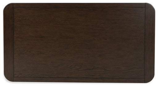 View full detailsIf casual contemporary style is your thing, then you'll love this table. Its thick tabletop, softly rounded corners and dark wood-tone finish lend ...