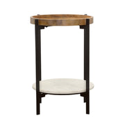Adhvik - Round Side Table With Marble Shelf - Natural And Black