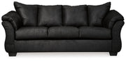 Talk about fine lines and great curves. That's the beauty of this standout sofa made to suit your appreciation for clean, contemporary style. A striking flared frame, comfy pillow top armrests and an ultra-soft upholstery that holds up to everyday living complete this fashion statement.