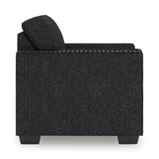 This stunning chair leaves a lasting impression. Its cozy cushions, chic coal-colored upholstery and striking nailhead trim are a perfect blend of comfort and contemporary design. And here’s the showstopper—ambient red, white and blue LED lighting along the chair's base. The look is simply wow.
