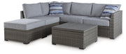 Petal Road - Loveseat Sectional, Ottoman, Table Set (Set of 4) - Gray