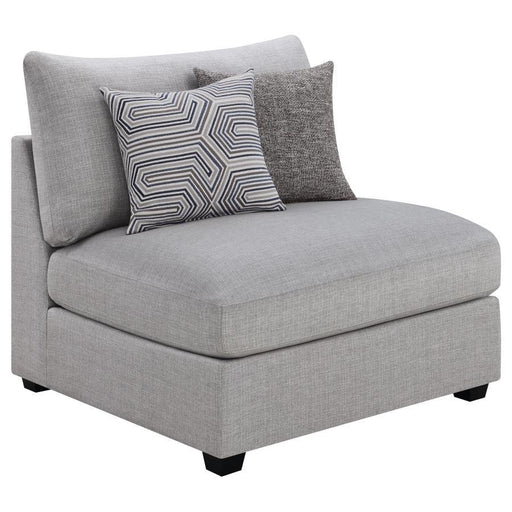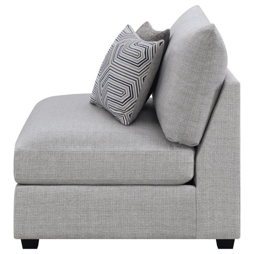 View full detailsThis armless chair offers versatility and modern appeal for today’s living spaces. Upholstered in soft grey fabric, its clean lines and plush cushi...