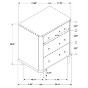 This coastal-inspired bedroom set blends mid-century modern influences with natural textures for a serene retreat. The bed features a cream fabric upholstered headboard and footboard, framed by a wire-brushed wood finish that enhances the beauty of rubberwood, engineered wood, and ash veneer. Aged brass knobs and slender metal legs provide a refined contrast. Designed for modern living, the nightstand includes a built-in dual USB charging port. With its organic textures and functional details, this set offers timeless style and everyday convenience.