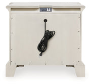 Add a touch of romance to your bedroom with this nightstand. Its antiqued white painted finish and serpentine-shaped silhouette are the definition of easy elegance. The nightstand's three spacious drawers accommodate bedside essentials, while an integrated power outlet and USB charging keep up with your high-tech lifestyle.