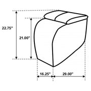 Elevate your home theater with this sleek wedge console, designed to pair seamlessly between recliners. Upholstered in smooth black top grain leather, it adds a polished look while offering everyday convenience. A soft-closing lift-top storage compartment provides space for remotes and accessories, while integrated cupholders enhance functionality. Built with a sturdy frame and supportive cushioning, this console combines durability with modern style, making it an essential element of a customized theater seating arrangement.