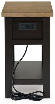 When you’re styling your living room, convenience is key. With this chairside end table, casual flair meets can’t-miss function. Tired of trekking to find a charger when your device is dead? This table's built-in outlets and USB ports allow you to stay at ease in your favorite seat. The fashionably functional piece pairs a dark chocolate brown with a light wood tone, complementing a variety of color palettes.