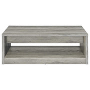 Create a cohesive look in your living space with this rustic coffee table set. Featuring a weathered gray wood-look finish, the set is crafted with engineered wood and scratch-resistant veneer for durability. Each piece includes clean lines, spacious storage drawers with bold metal handles, and open shelves for additional display or storage. This set blends rustic charm and functionality, making it ideal for casual and modern interiors alike.