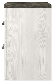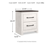 Cool, clean and casually modern. This nightstand's wispy whitewash and gray finish sets the tone for your calming sanctuary. Large linear pulls add dimension and authenticity. Two smooth-gliding drawers neatly accommodate your bedside needs.