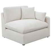 Feel your stresses melt away as you're embraced by the cushioned comfort of this right arm chair as part of a sectional for your den or living room. Upholstered in linen-like, the chair comes with a plush seat and back for enduring comfort. It also has sloped track arms accented by stylish topstitching. The treated fabric easily repels water and moisture so spills won't soak in before you wipe them up. This chair is the perfect end to your modular sectional showpiece.