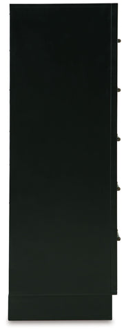 Experience the captivating allure of this chest of drawers, an effortless blend of casual and refined aesthetics. Its two-tone finish combines satin black with a rich brown wood tone for a modern, relaxed vibe that you'll love waking up to. Perfectly suited for your contemporary home, this chest has plenty of drawer space to tuck away your wardrobe and spare bed linens.