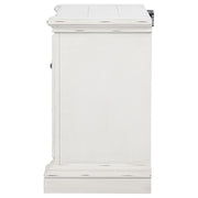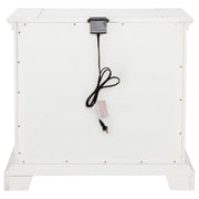 Charming and functional, this two-drawer nightstand blends classic design with thoughtful details. A vintage white finish softens the ornate carvings and sculpted base, while antique bronze handles bring graceful contrast. Dual USB ports are hidden at the back for modern convenience, while felt-lined drawers offer protected storage. Built from poplar and engineered wood, it balances timeless beauty with everyday function.