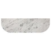 Exuding stylish personality, this contemporary server is a chic blend of mid-century and more updated design ideals. Ample interior storage is showcased behind four doors that create an oval silhouette, offering dimension and visual interest to a kitchen or dining room. The top of the server is beautiful, natural white marble that lends luxurious elegance to any setting. The case boasts beautiful mango woods construction in a warm, natural finish that lends earthy sophistication, complemented with brass inlay details for metallic shine. Vertical fluting decorates two side doors on the server, offering a perfect complement to the Ortega collection dining table.