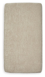 Serene style with a modern sensibility. Delight in the cozy, versatile embrace of this ottoman. It takes an on-trend approach to irresistible texture and natural beauty, showcasing soft upholstery accented with a transitional wood trim. As refined as it is laid back, the ottoman also keeps comfort a priority with a plush, thick cushion.