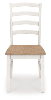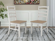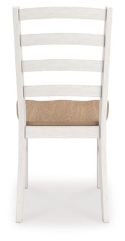 Busy breakfasts and family dinners get a dose of modern farmhouse flair with this dining chair. Its two-tone finish contrasts a light butcher block hue with an antiqued white frame for an utterly charming effect. A contoured seat elevates the comfort level. Complete with a ladderback design, it's an effortless seating solution with chic character.
