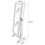 This impressive jewelry Cheval mirror is more than just a pretty face. At almost five feet tall, this tilting mirror has enough mirror space to ensure that you can check your outfit from head to toe. It opens up to storage space consisting of three lower horizontal shelves and hooks and right holders that hold all your valuables with ease. A built-in, four-inch deep jewelry box safeguards other precious accessories. It's finished in a handsome dove grey that matches any decor.